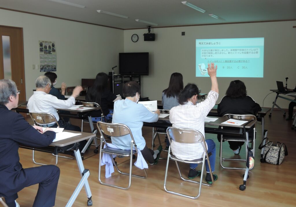 また、携帯トイレや段ボールトイレの紹介に加え、クロスロードゲームや、防災カードを使用したワークショップなどを行い、地域の多様な考えを理解し、参加者同士の繋がりを作り出すことができ、地域における多様性に配慮した防災意識を高める機会となりました。