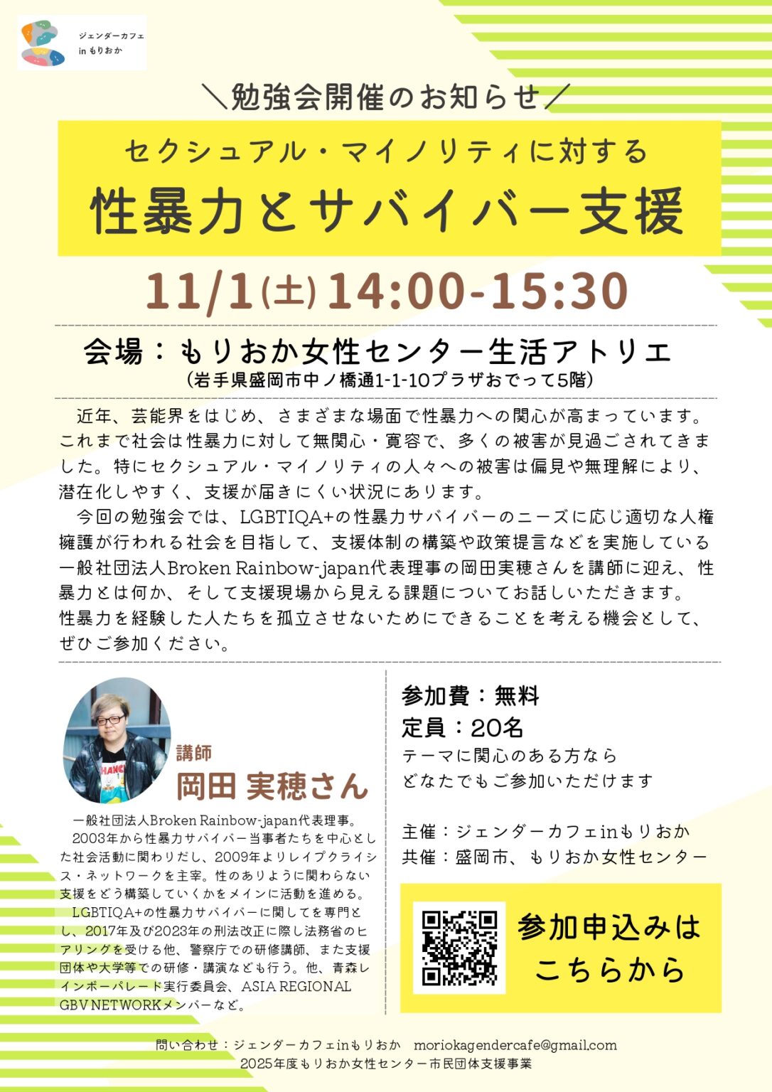 【市民団体支援事業】ジェンダーカフェinもりおか 勉強会「セクシュアル・マイノリティに対する性暴力とサバイバー支援」
