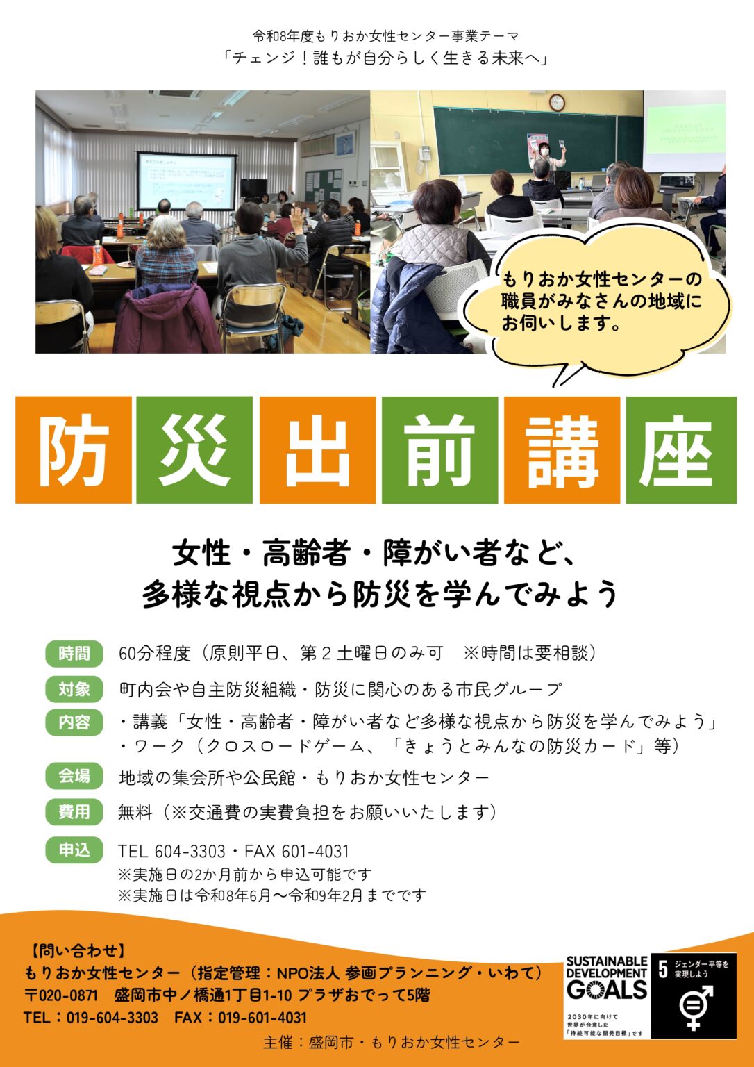もりおか女性センター 電話:019-604-3303 FAX:019-601-4031